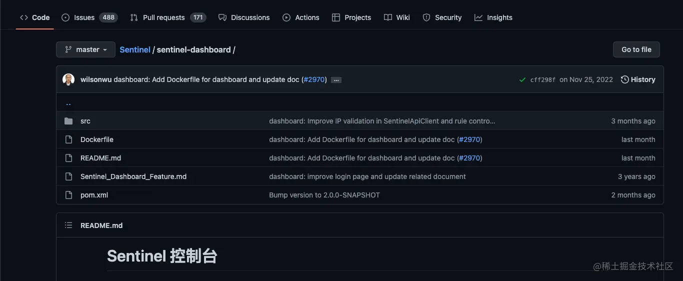- 此外也可以从最新版本的源码仓库自行构建Sentinel控制台,下载源码。如下图所示