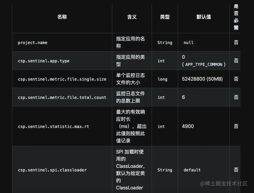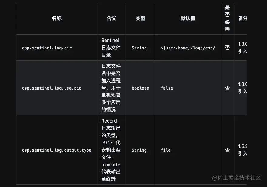 sentinel-core 的配置项