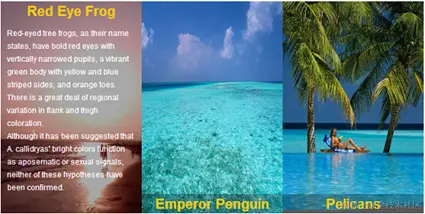 鼠标移到图片上时,会从底部向上滚动出带有文字介绍的遮罩层,这也是一种非常实用的特效。下面我们给大家讲解一下这种效果是怎么实现的。