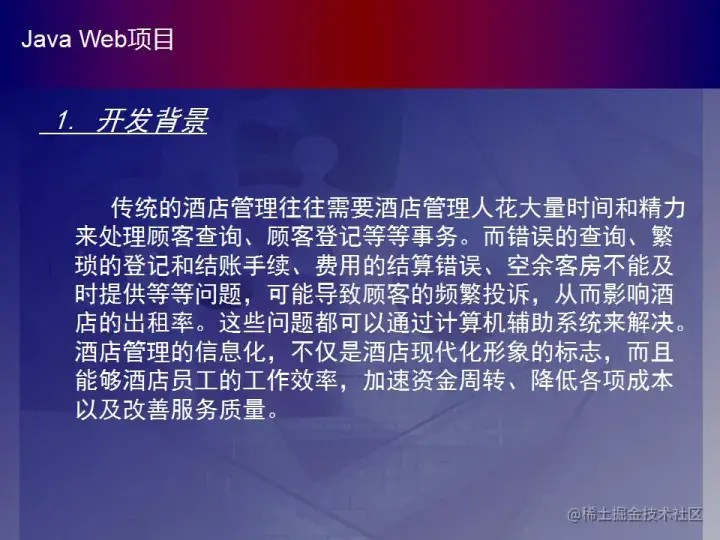 中国经济近几年来取得蓬勃飞速发展,使得人民生活水平的要求和生活的质量有了很高的要求。因此人们对外出旅游和就餐的需求也越来越大。同时,随着我国科技水平的兴起和对互联网+新时代的大力支持,酒店管理系统在现代人们的生活中扮演着不可或缺的角色。