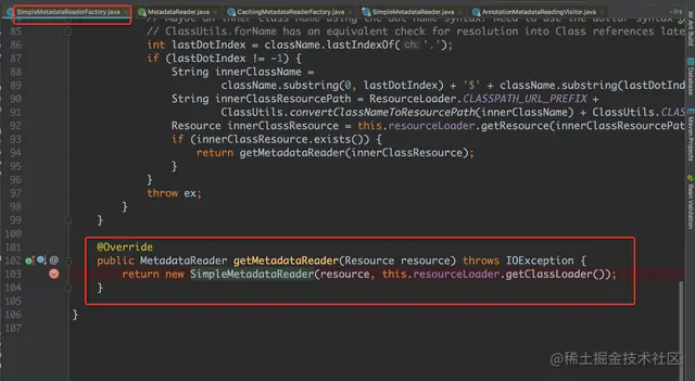 SimpleMetadataReader(Resource resource, @Nullable ClassLoader classLoader) throws IOException {
