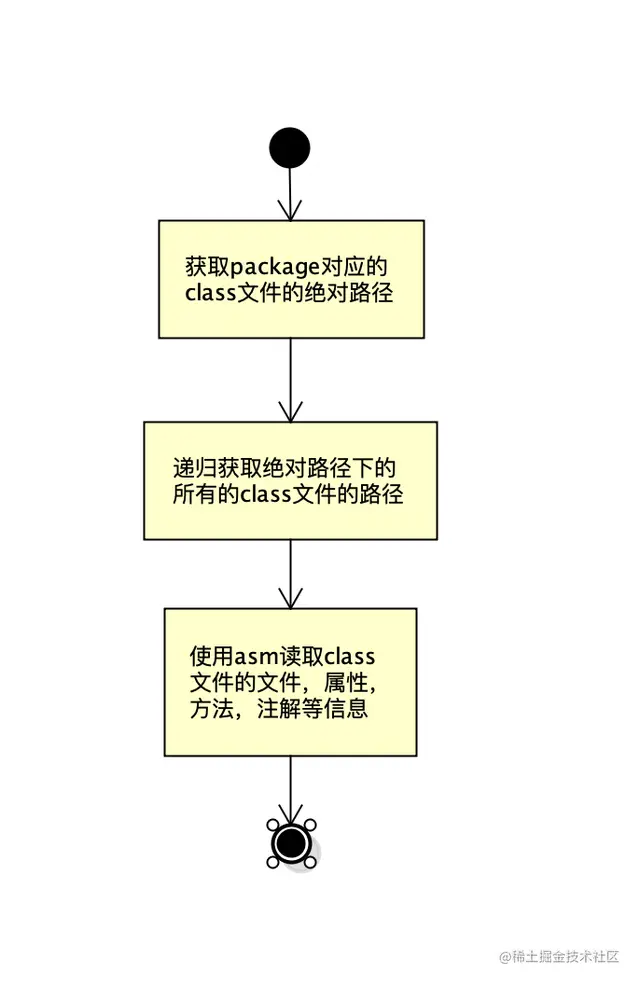 通过asm的解析,最终返回MetadataReader的对象,通过MetadataReader可以读取到类的元数据和注解的元数据。