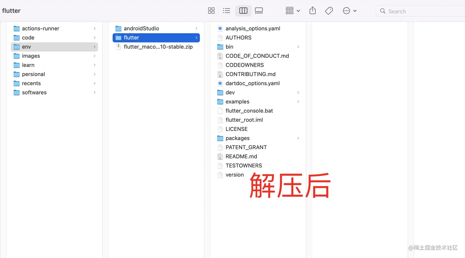 假如你的文件下载到了这里/Users/xiaojin/flutter_sdk/flutter,那么打开.bash_profile写入以下内容后按esc键 :wq保存退出: