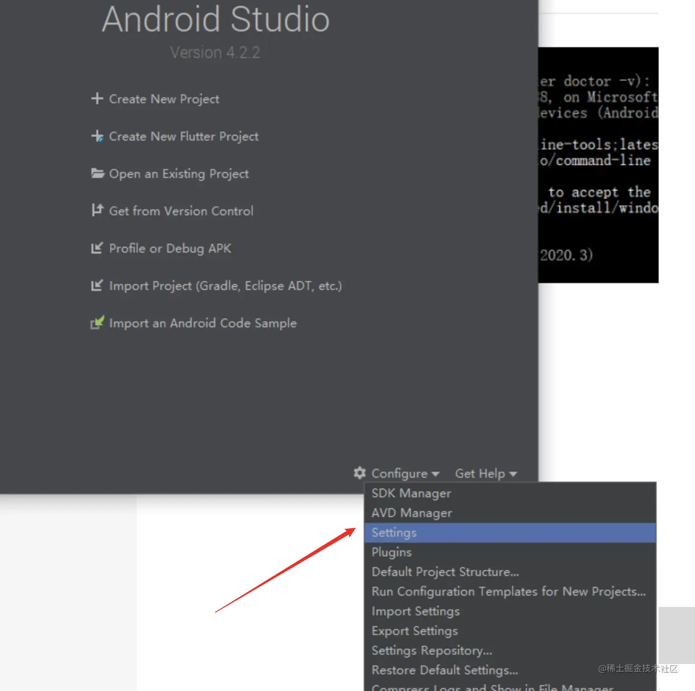 打开android studio的设置