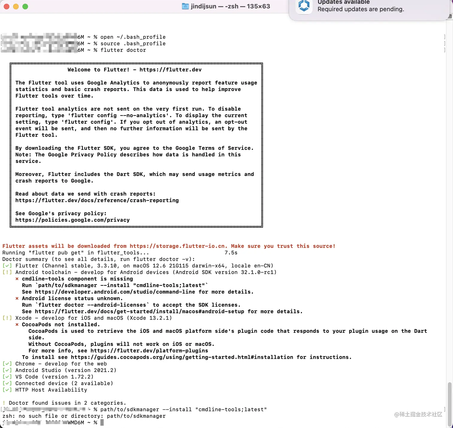 Flutter 环境配置提示 cmdline-tools component is missing