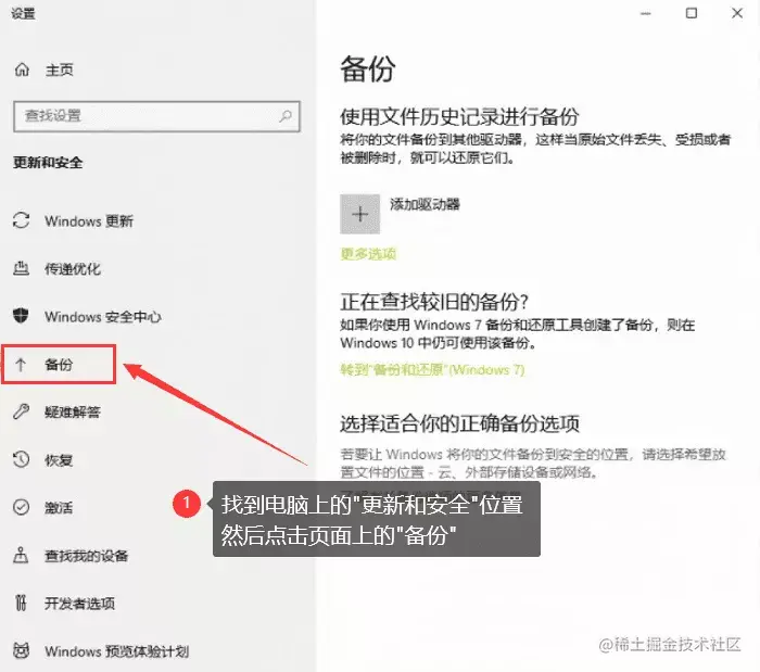在电脑的【设置】页面找到【更新和安全】,点击【备份】,就可以通过备份的方式来恢复误删的数据。