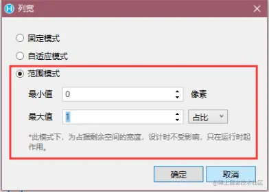 在活字格中,范围模式提供了按照像素与占比两种方式来设定范围