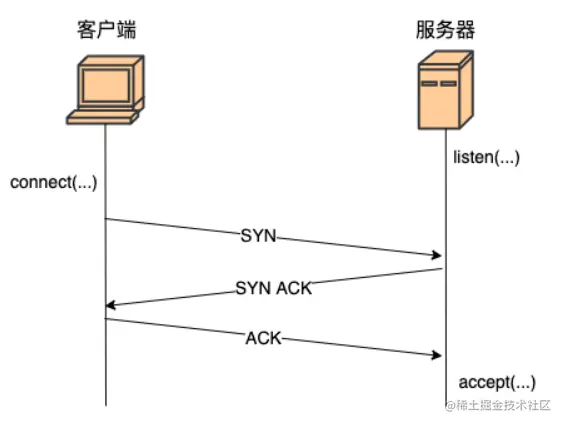 在基于 TCP 的服务开发中,三次握手的主要流程图如下。