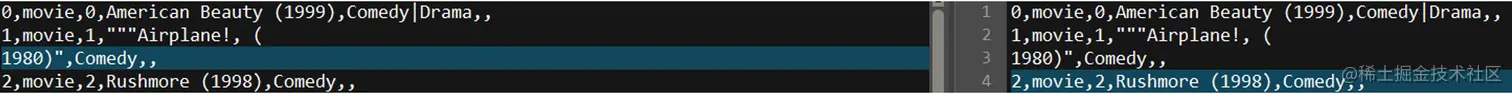前文中我们提到过CSV文件中每条记录是通过换行符分隔的,常用逗号作为分隔符。但在实际处理数据时会遇到字段中也存在换行和逗号的情况,如果A程序没有处理好对应的数据,在导入B程序时就会产生错误的数据或记录。
