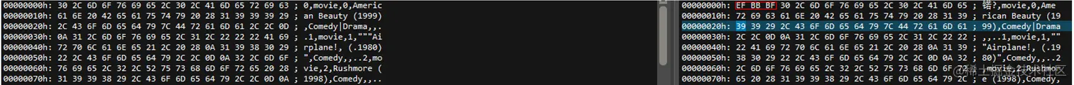 很多时候CSV文件的编码格式都是较为常见UTF-8格式,UTF-8格式存在BOM头的问题,这种问题大部分原因是在Windows下编辑CSV文件时被自动加上了BOM头。如果程序B没有处理好BOM头,会导致将BOM头也被当做字段的一部分,而且这种错误无法通过直接观察CSV文件来发现。