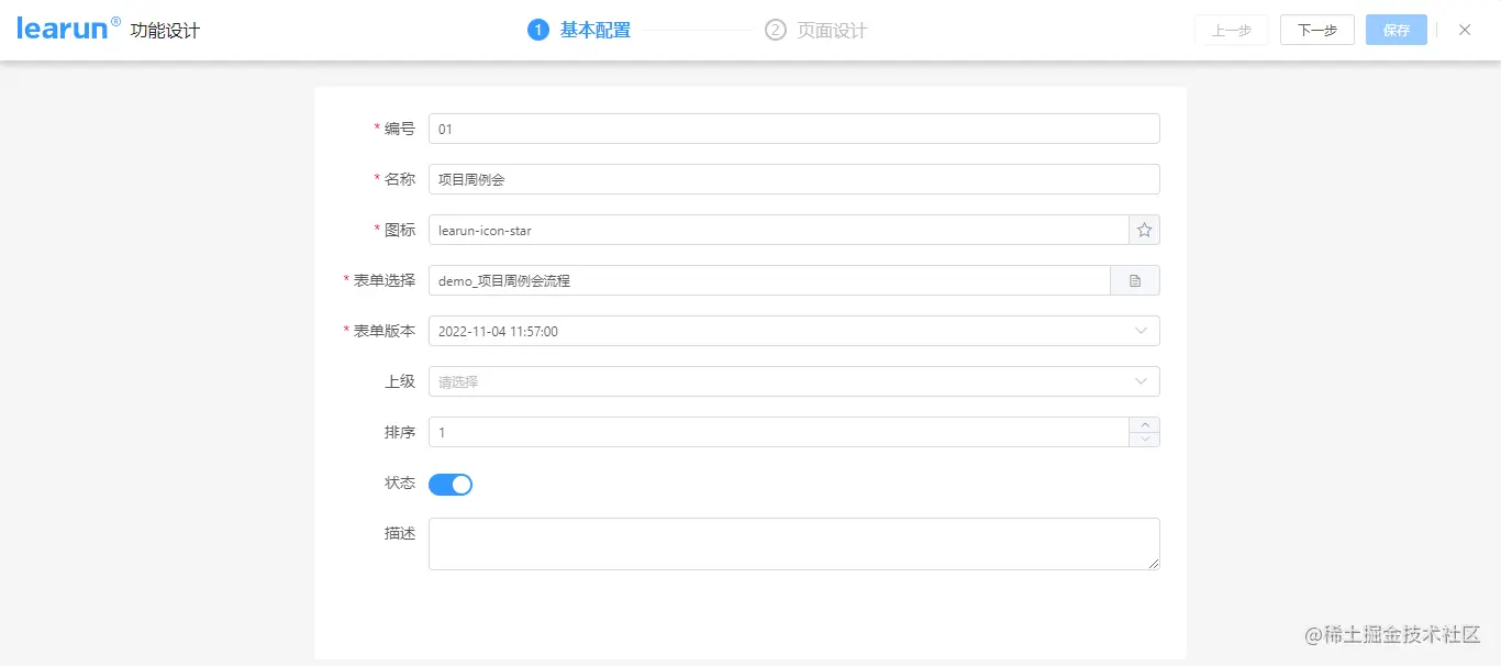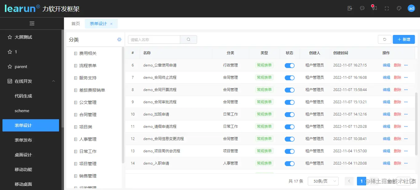 设计好后点击[保存]即可,或者中途可以点击[保存草稿],可之后编辑,不需要前端人员做额外的开发工作,直接将页面的数据保存在页面缓存中,表单列表界面会显示其状态为“草稿”。