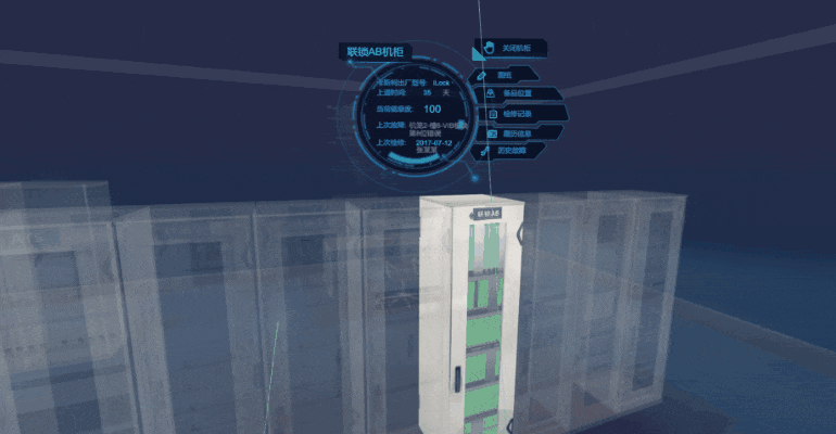 虚拟机房场景通过运用虚拟现实仿真,融合 720° 全景技术、实景三维建模、巡检机器人等前沿科技。实现对机房 IT 资产管理、UPS 硬件状态监控、动环设备、服务器主机的自主监视、故障监测、远程告警监控。从而构建大范围、无死角、多维度的运维管理环境,打造数据中心无人值守的管理模式。