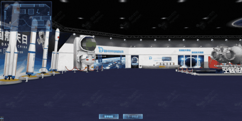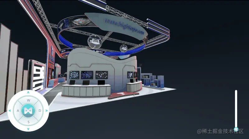 图扑也曾搭建过智慧云展厅,场景内支持使用 WASD、方向键控制行进方向,或者通过触屏设备的单指双指操作,真实的模拟出用户在场馆内的行走状态。为无法到展会现场的嘉宾提供别具特色的参展途径。