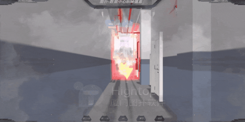 图扑软件搭建的虚拟应急逃生演练场景,基于 CAD 图、鸟瞰图、设备三视图等资料,对需求设备、建筑、场景进行建模还原。戴上 VR 设备,即可展开模拟各类突发事件应急逃生流程。以场景视觉模拟演练为主导,将沉浸感、交互感与存在感高度融合,达到逃生演练知识的视觉传达目的。