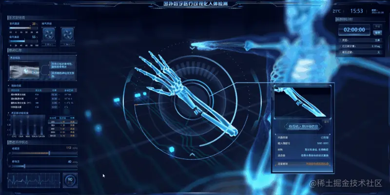 图扑软件曾搭建过智慧医院临床 3D 可视化解决方案。场景同样支持用户借助 VR 技术对患者病灶体征进行实时模拟,3D 多模态成像数据叠加虚拟现实 VR 技术,再现病况区域的真实情况。全方位、立体化、多视角了解病症的位置关系,有助于制定良好的手术策略,增强术中空间定位准确率。