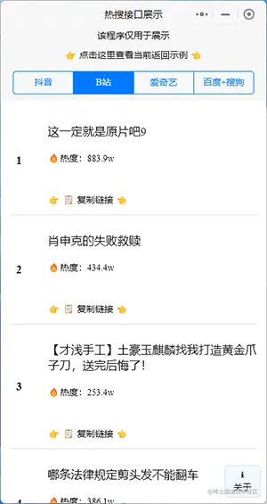 稍微完善了一下,增加 BiliBili热门 的结果展示。