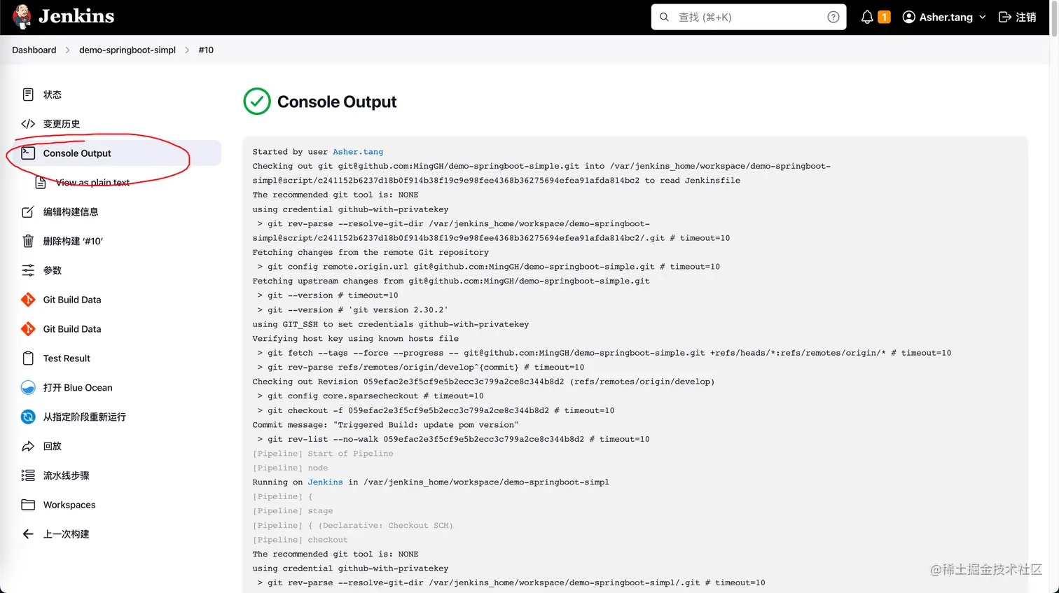 因为流程很长,出现问题不要慌。直接点击那一个构建过程,进去看看日志。