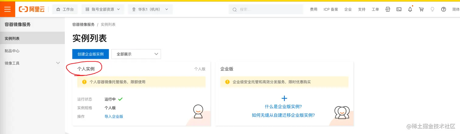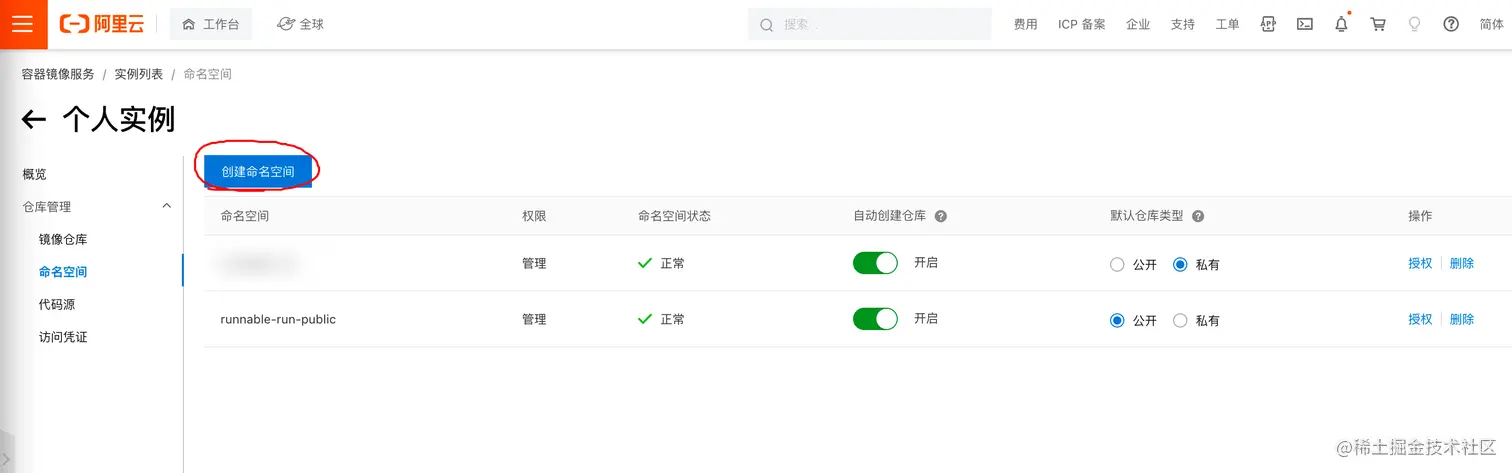 阿里云容器镜像服务地址: cr.console.aliyun.com/