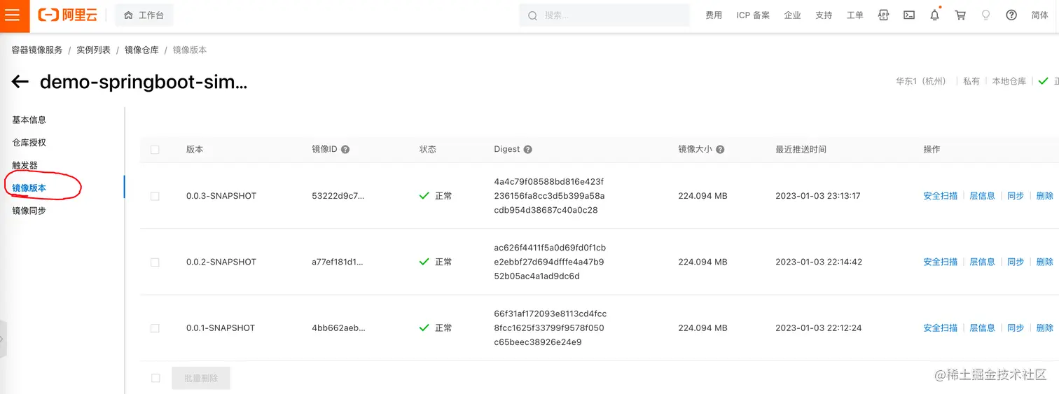 之后Jenkins推送镜像上来,可以在这里 镜像版本找到对应的镜像