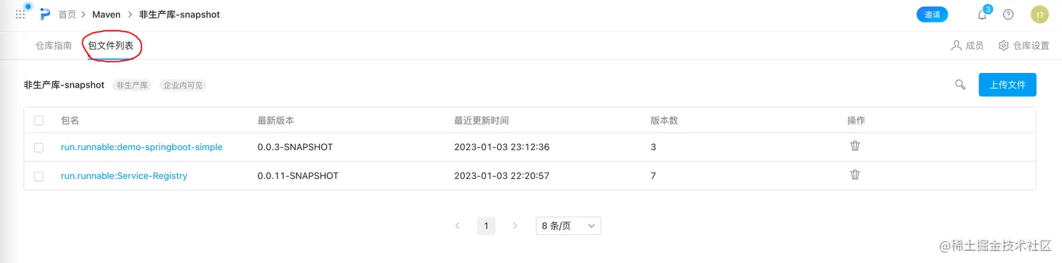 在旁边的包文件列表可以看到之后Jenkins推送上去的包