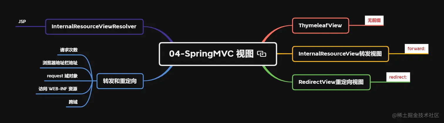 Thymeleaf视图解析器解析之后,创建的才是ThymeleafView。当视图名称包含前缀(如forward:或redirect:)时,分别对应的时InternalResourceView转发视图和RedirectView重定向视图