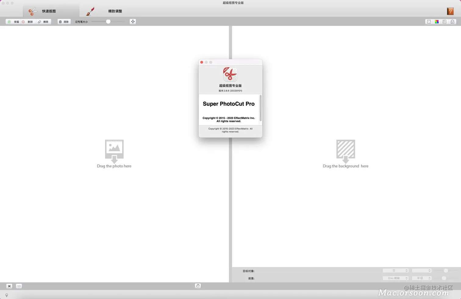 Super PhotoCut 中文版又名超级抠图,是mac上一款非常强大的智能抠图软件,可以让您不需要使用任何复杂的操作,只需要在图片上勾画出需要保留的部分,然后程序会自动处理,能够准确地覆盖您想要去除的任何一个细节区域,抠出图片中你最想要的部分。让您从此告别繁琐的专业图形编辑器套索和魔术棒工具,非常好用!