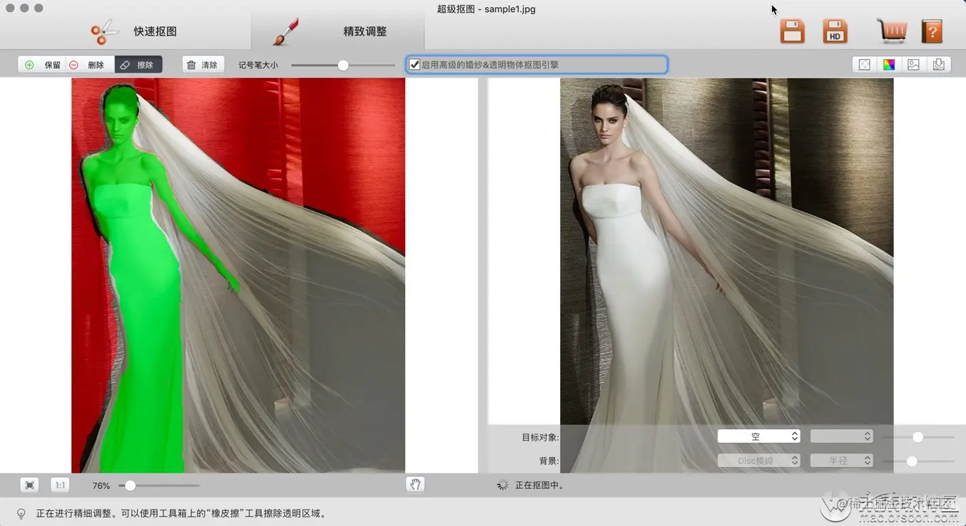 Super PhotoCut超级抠图Mac版是一款简易小巧的专业抠图软件,它能够帮你准确地覆盖你想要去除的任何一个细节区域,抠出图片中你最想要的部分。不需要任何的技巧,你只需要在图片上勾画出需要保留的部分,然后程序会自动处理。超级抠图善于以最小的难度去除复杂的背景,一分钟抠图不是神话。热爱拍照但又不精通Photoshop的修图的你,是时候跟繁琐的专业图形编辑器套索和魔术棒工具说拜拜了。有最好技术就可以这么任性。