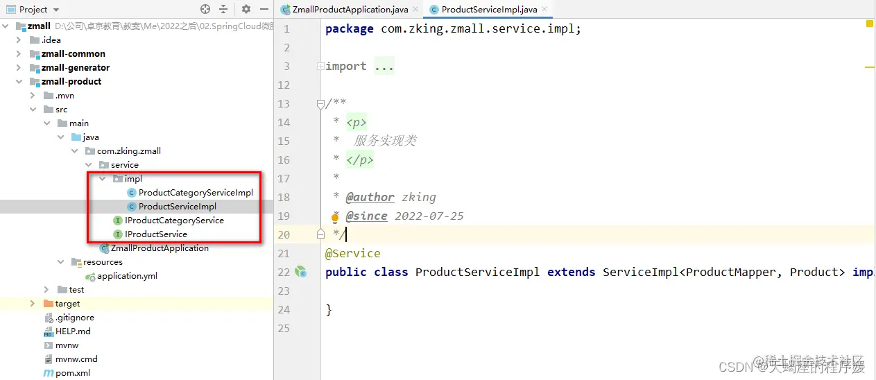 5.将公共子模块中生成的service层代码复制到商品服务子模块zmall-product中,并删除掉非商品相关的service接口及实现类