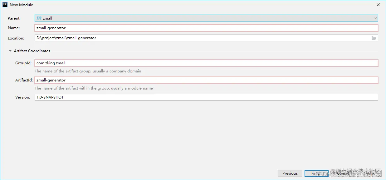 1.基于maven方式创建子模块zmall-generator,用于结合mybatis-plus生成代码。