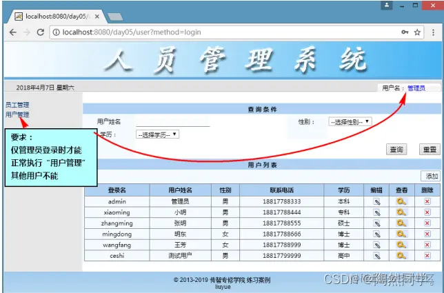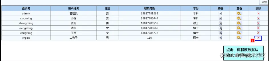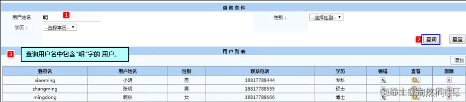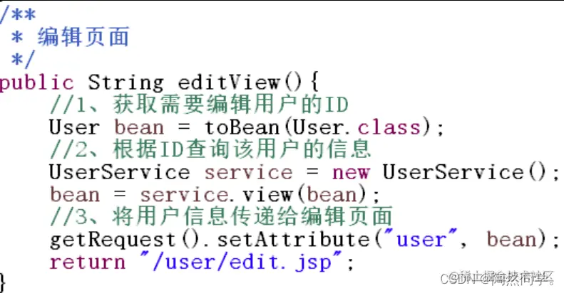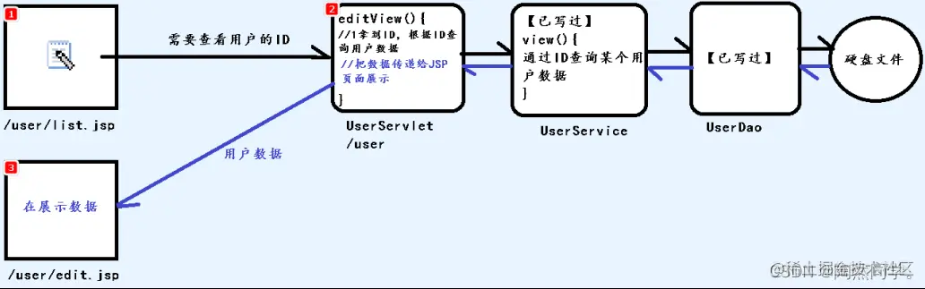 1、 用户数据查询展示:点击编辑,查询某个用户数据,在 JSP 页面展示
