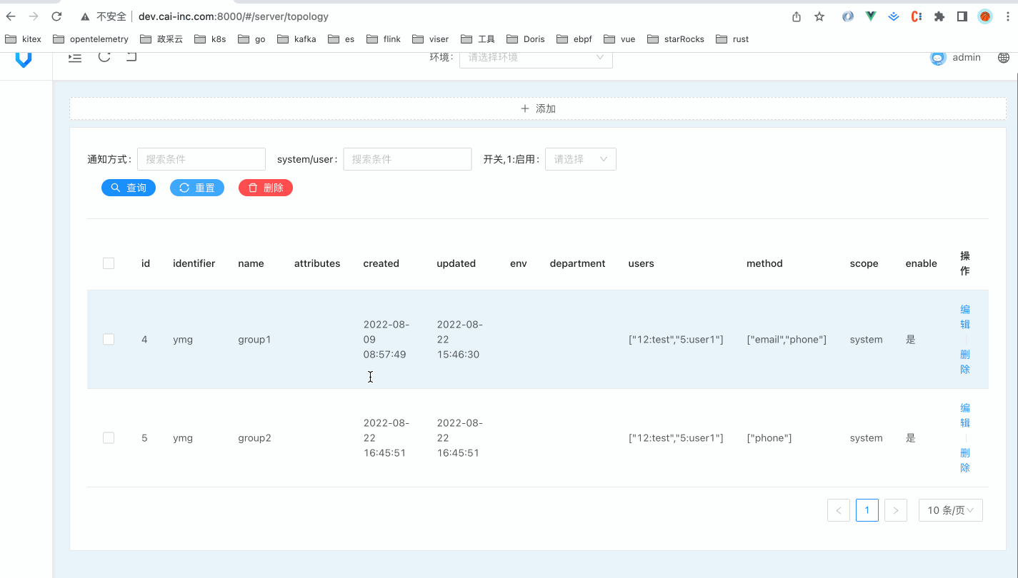 编辑字段:修改字段数据,修改字段数据类型,相对应的修改了数据库字段的类型,为字段设置搜索条件(只有字符串类型可以设置搜索条件为like),只有整形字段可以添加关联字典等。