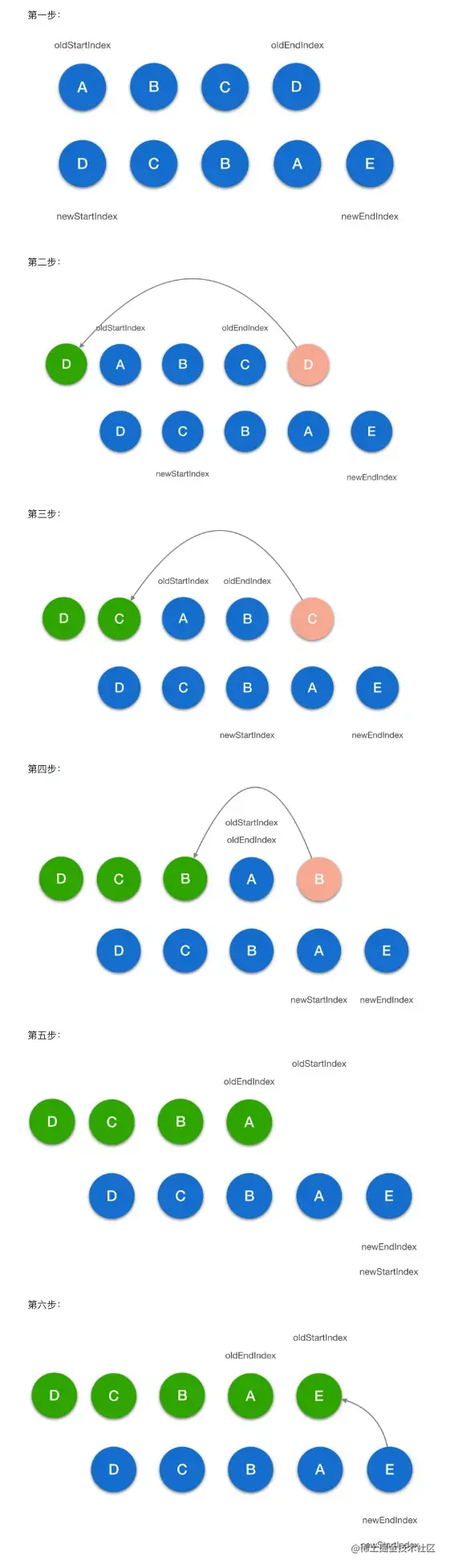- Virtual DOM到真实的dom需要经过以下过程:VNode 的 create、diff、patch