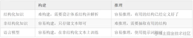 然而,语言模型提供了一种新的方法,可以轻松地从非结构化文本中提取知识,并在不需要预定义模式的情况下有效地根据知识进行推理。下表为优缺点对比: