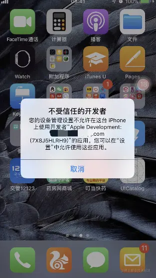 踩坑: 苹果对未在 AppStore 中上架的 App 做了限制,默认不受信任,所以我们需要手动将其设置为信任: 设置-通用-描述文件与设备管理