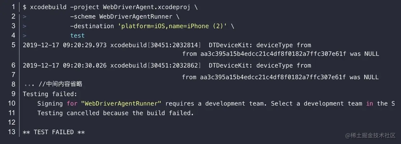 根据 WebDriverAgent 官网提供的步骤,将参数替换为我们真机的参数后在真机上尝试build 。