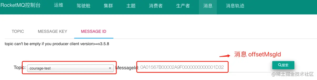 从开源的控制台中根据主题和 key 查询消息列表: