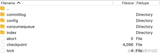 本文的重点在于分析 BrokerServer 的消息存储模型。我们先进入 broker 的文件存储目录 。