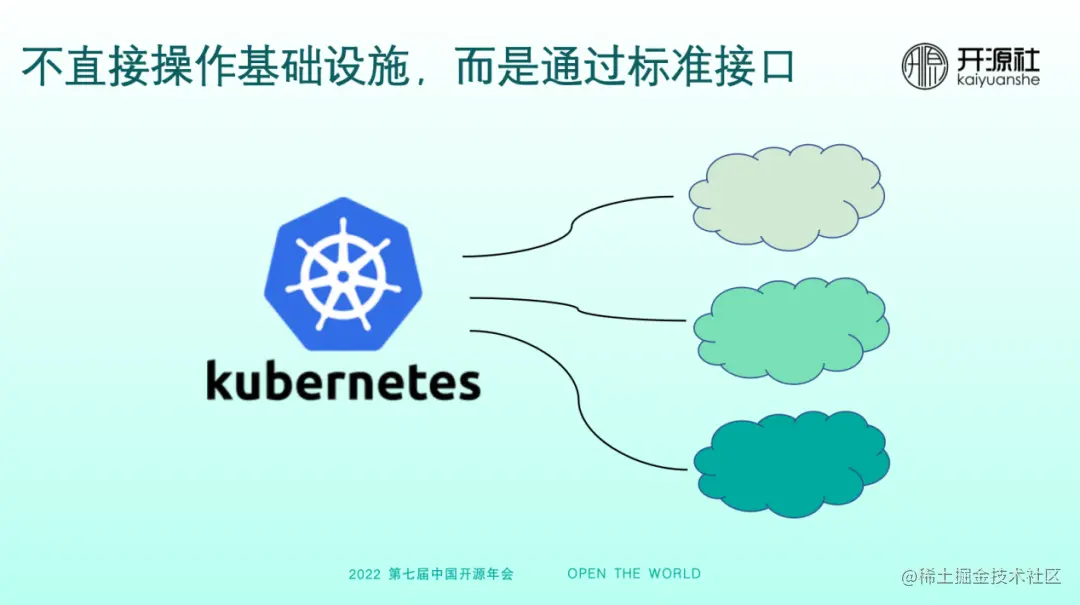 从社区角度看,因为社区面向不同用户,不同用户往往会在不同云基础服务提供商上进行部署。但是从 IaaS 层设施看,不同云厂商提供的接口并不统一。
