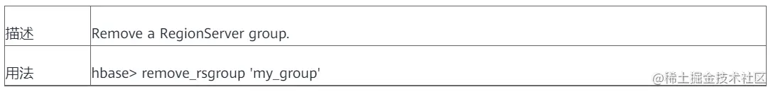 删除指定RSGroup。存在table和regionserver的非空RSGroup不可以被remove。