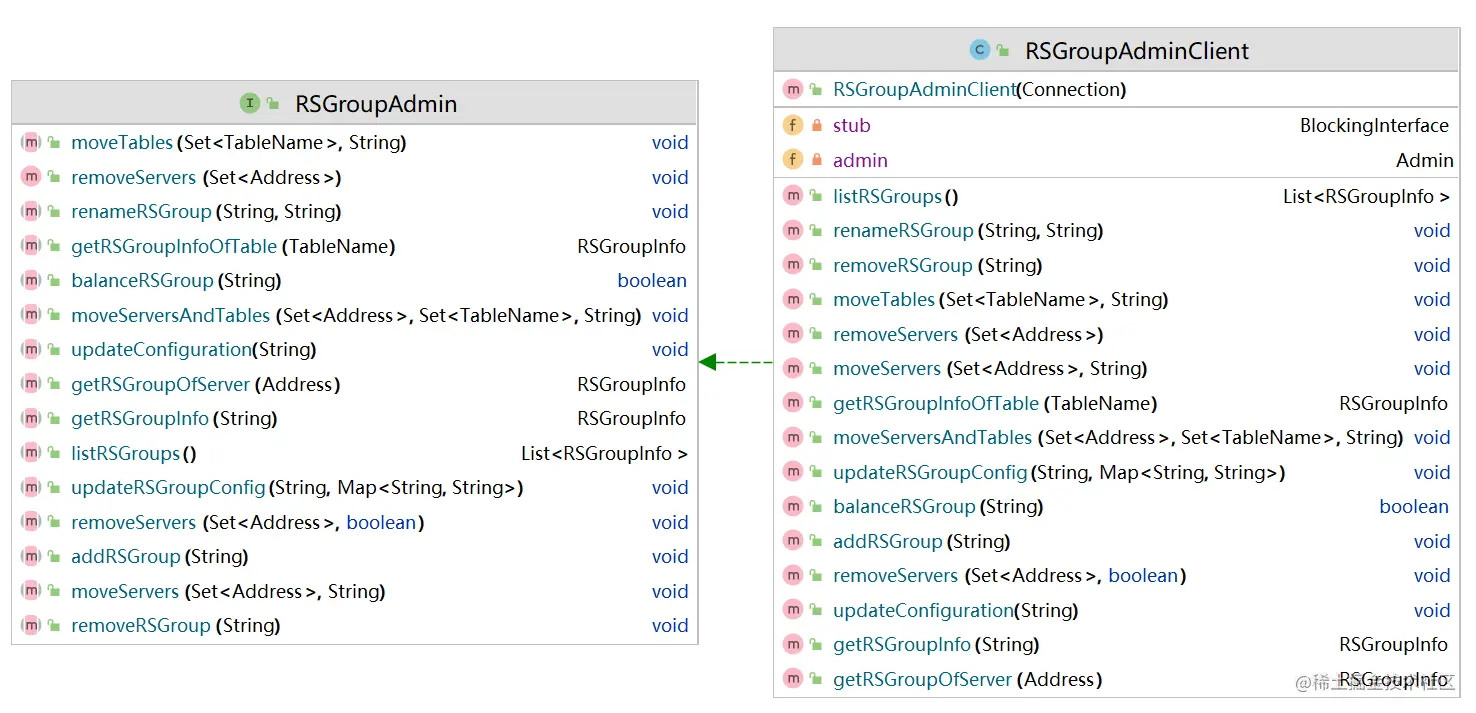 toGroupInfo的调用在RSGroupAdminClient和RSGroupInfoManagerImpl中。(除了测试代码)
