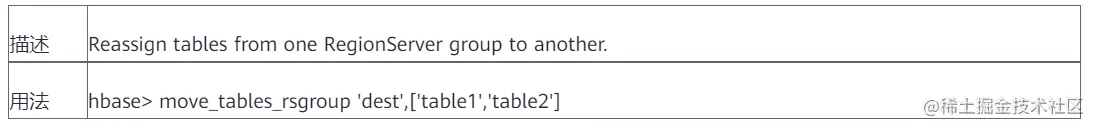将表从一个RSGroup移动另一个RSGroup。将指定的表添加到RSGroup,表的region都会转移到该RSGroup内的RegionServer上。无法将表移动到无RegionServer存在的RSGroup,将报错。