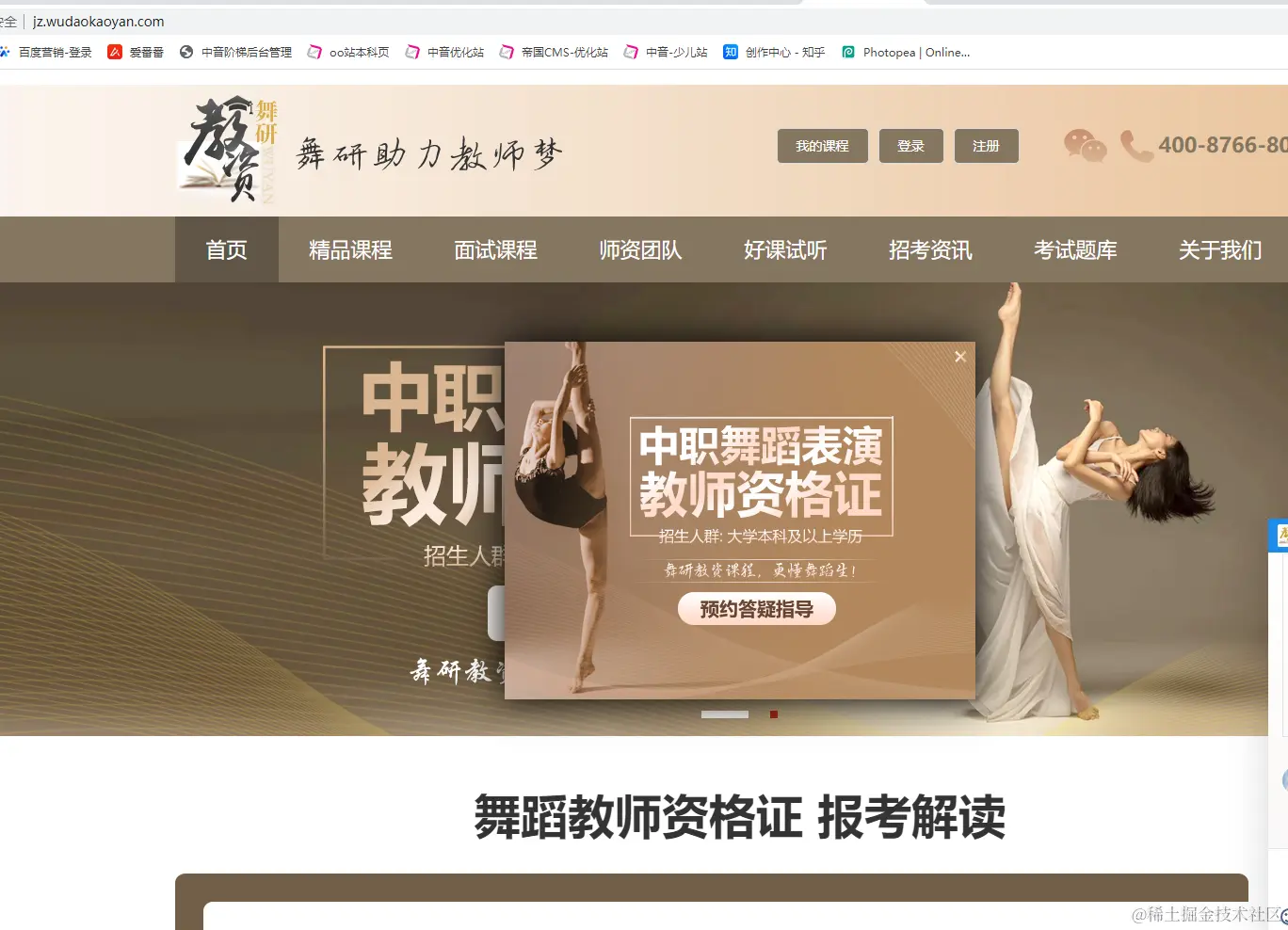 舞研优化站页,截图如下: