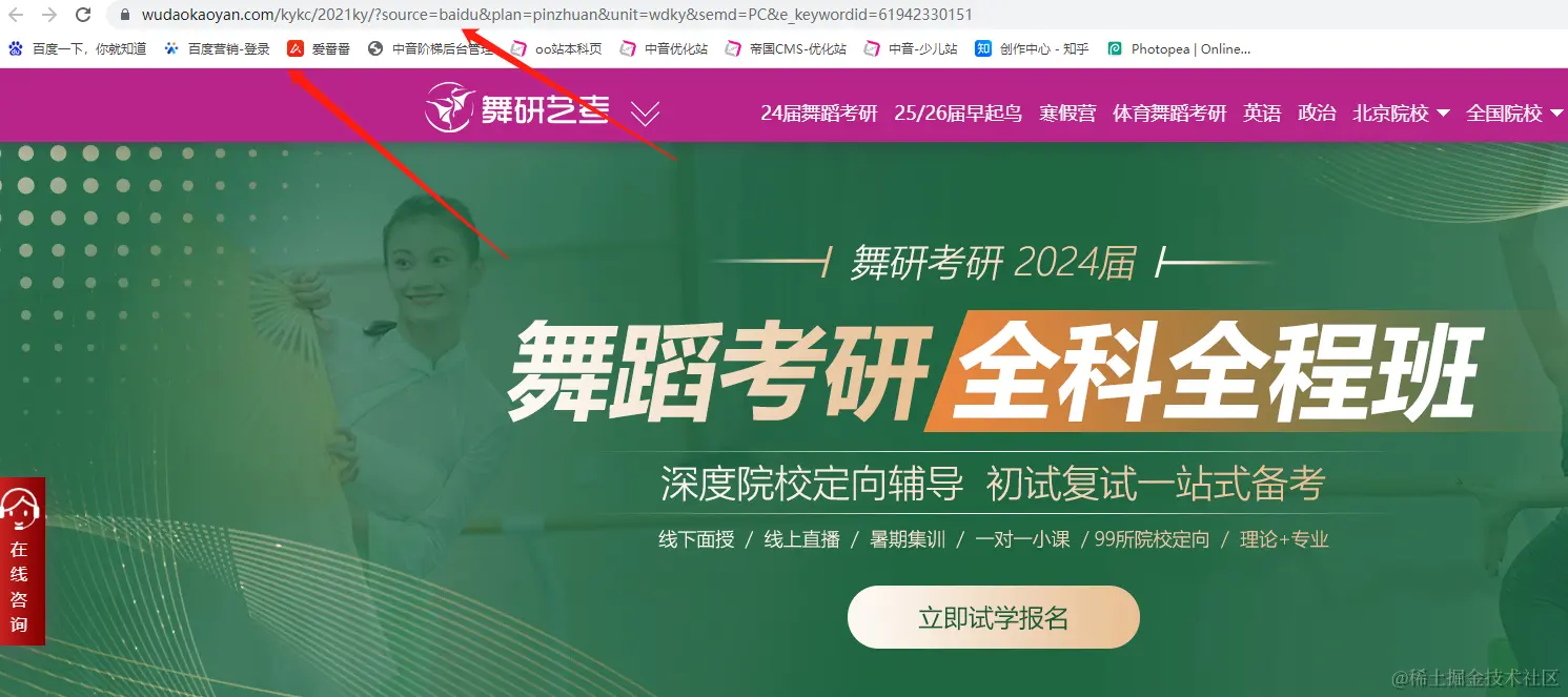 总结:舞研的优化站和推广站是在同一个域名下边的,域名下边的专题页作为优化站的首页或者推广站的首页。