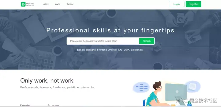 **一个比较简单粗暴的方式是接触外包。**没错,一个低成本甚至可以让你小赚一笔的兼职接单,可以让你用最原始的方式开拓视野。国内的程序员客栈、程序邦等都是不错的外包私活平台。另外着重推荐海外的devnors,这是一个海外的私活接单平台,在这里你可以接触到国外技术圈的项目,可以极大的拓宽你的视野。