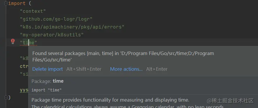 Goland 报错:Found several packages [main, time] 运维开发笔记 2023-01-06 1,184 阅读1分钟 接上篇文章,把本地的go从1.16升级到1.18解决了项目编译问题。 但是goland里又报一个红叉了。 对于我这种强迫症来说,真烦。 查了下,说是我的goland版本太多,和go语言版本不匹配。 没办法,升级goland版本。 使用golang2022.3版本,果然好了