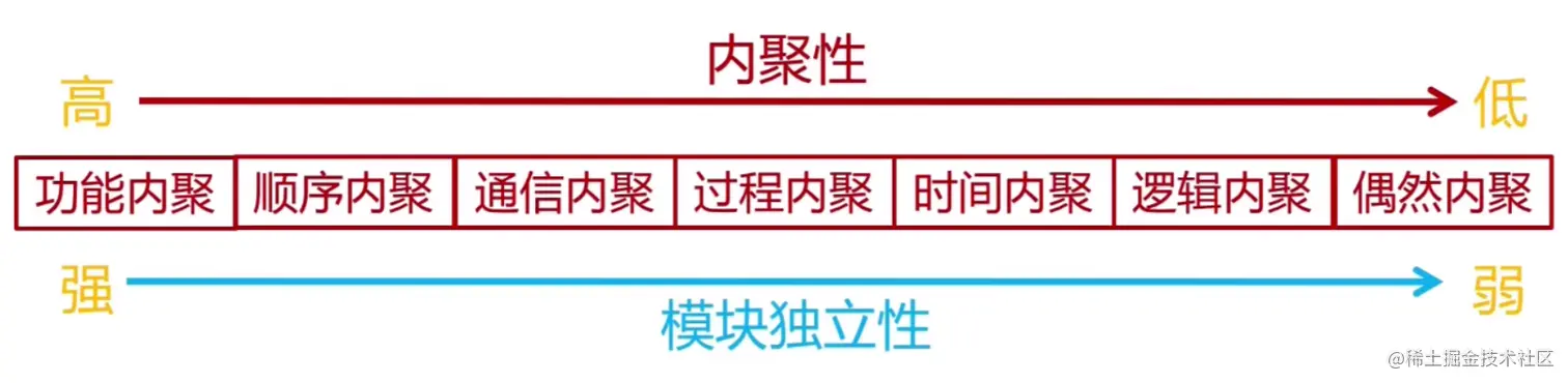 首先我们将目光投射到内聚上,通常我们的代码的内聚归为7类,如下图所示,内聚性从高到低。