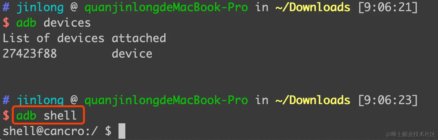 我们通常使用adb devices来查看电脑上连接的Android设备,使用adb shell打开Android设备上的终端来执行各种命令。使用adb logcat来查看Android设备产生的log信息。