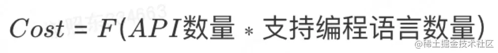 虽然在SDK中支持参数富模型功能,可以有效提高使用者的效率,但也会带来SDK的开发和维护成本增加。如果采用纯人工的方式去开发维护SDK中支持的所有API的参数模型代码,需要投入的开发维护成本与SDK支持的编程语言数量和API数量呈正相关性,其成本公式为: