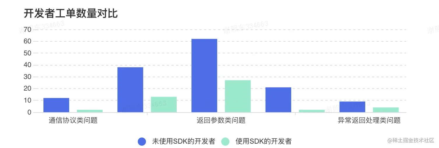 通过最近半年数据的对比,我们可以看出开发者使用SDK后在接口对接环节遇到的疑难问题明显减少。基本达到了我们最初提高开发者接入效率,降低平台研发和运营处理工单成本的目标。