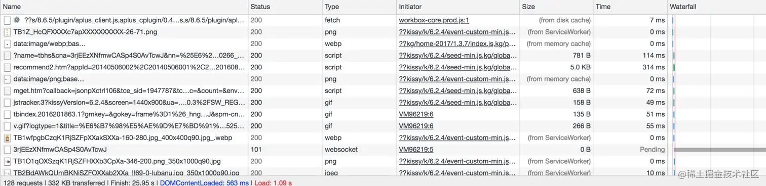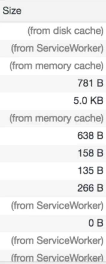 HTTP Cache(即Cache-Control、expires等字段控制的缓存)应该比较熟悉,如果对其它几种缓存可能还没什么概念,我们可以先来看一张线上网站的Network面板截图: